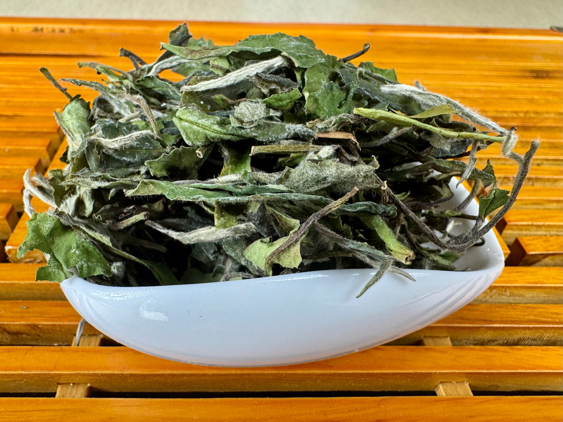 Shou Mei (寿眉), meaning “Longevity Eyebrow,” is a late harvest white tea made from mature leaves and buds, traditionally from the Fuding Da Bai cultivar (福鼎大白茶樹) in Fujian Province. Compared to Bai Mu Dan or Baihao Yinzhen, Shou Mei is picked later in the season—resulting in larger, thicker leaves with greater complexity and body.